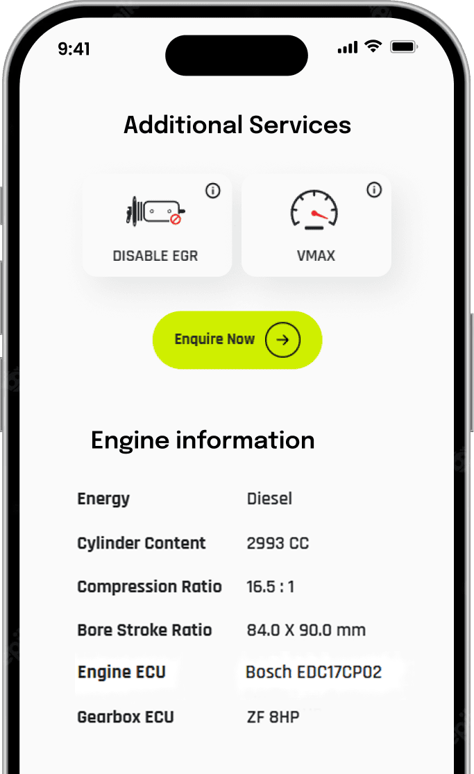 Additional Services: When users search a vehicle, our tool also presents relevant remapping options like AdBlue, EGR, and DPF solutions, enabling you to capture more business.
